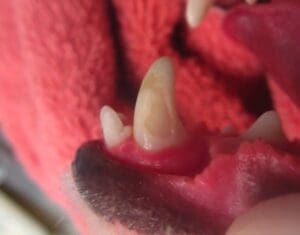 Enamel dysplasia literally means that the enamel, the outside layer of the tooth, did not form properly during development. It is either caused by enamel hypoplasia or hypocalcification. It can occur either on a few teeth or can affect the whole mouth. Teeth will often display a rough surface, appear to have a chalky consistency, and may display dark colored mottling (below left). The enamel will often chip off with limited force (below right). Most common causes for enamel dysplasia include genetic causes, infectious/febrile episodes, drug/toxin exposure, nutritional deficiency, or early trauma.