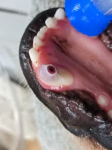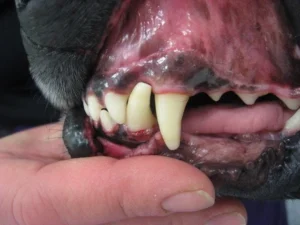 Pulpitis by definition is inflammation of the tooth pulp. The pulp is the inner part of the tooth that consists of blood vessels, nerve endings, lymphatics, and connective tissues. In pets the most common reason for pulpitis is traumatic force to a tooth, either from blunt trauma or chewing on items that are too hard. Typical scenarios seen in dogs are accidental baseball bat swings, golf club swings, hit-by-car injuries, and rough play (or fights) with other dogs.